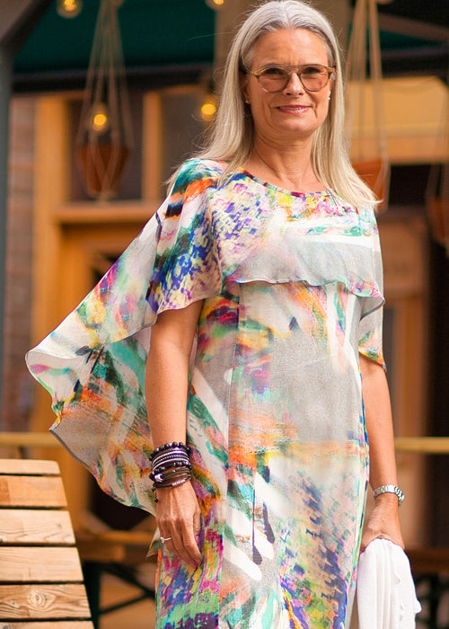 Kaftan blus med romantiskt mönster -