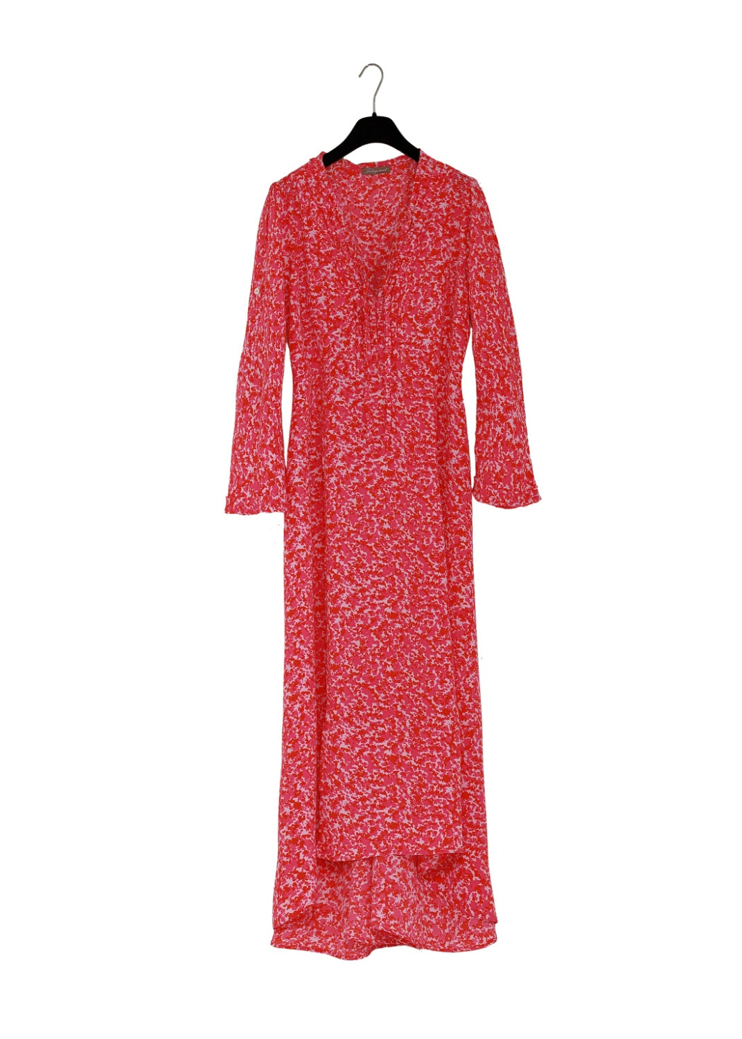 Maxilång klänning med ärm i hallonröd crêpe viskos Detaljer: