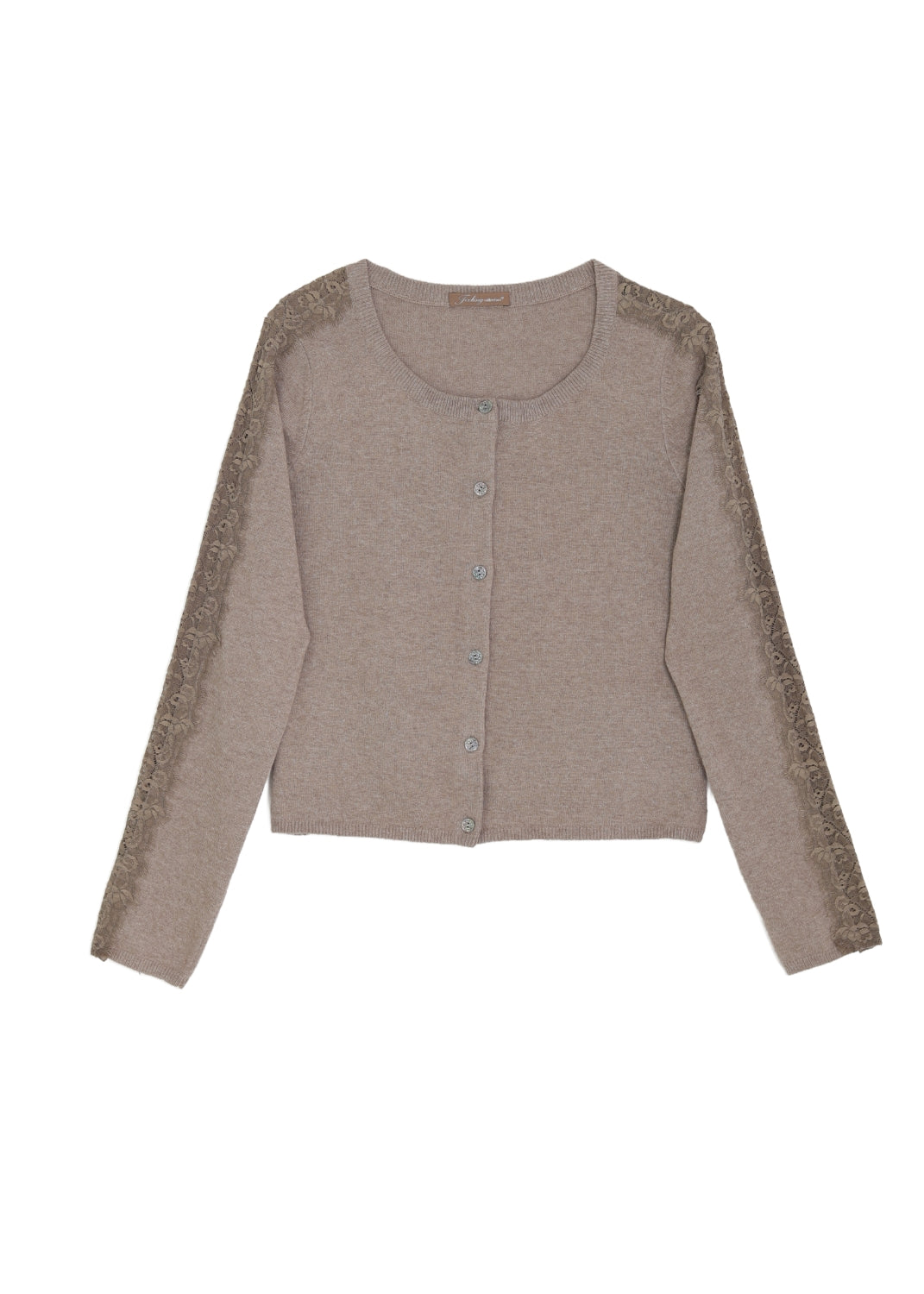 En cardigan som flirtar med både romantik och rock. Den är fint stickad med fully fashion-detaljer som ger en skräddad känsla, medan garnets mix av viskos och bomull sveper in dig i mjukhet. De utsökta pärlemoknapparna med graverat mönster, adderar ett sofistikerat skimmer. Längs ärmarna löper en infälld spets – en oväntad kontrast som förvandlar klassiskt till kaxigt. En rock-romantisk följeslagare, skapad för dig som älskar kontraster.